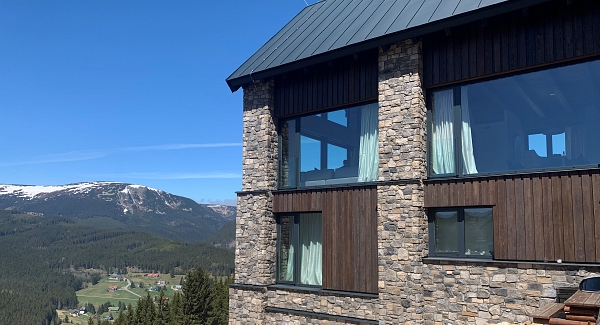 With the developer projects of modern flat houses the stone veneer has been popular long away. Here, the undoubted practicality and design uniqueness is great advantage. And more and more clients decorate their façades by the stone veneer, which provides their project with sense of uniqueness!